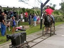 THE Roping MACHINE is equipped with variable speed controls for both forward and reverse. Once you are on the horse you simply tap the starter with your heel releasing the calf from under the horse allowing you to try to rope the baby calf. Once reaching the end of the 20 foot track the calf pauses briefly then returns to the original starting position. This allows the roper to remove the rope and start again and never dismount from the horse.